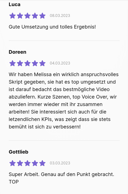 Als UGC Creator mit einem ausgeprägten Sinn für authentischen Content, liegt mein Fokus darauf, Marken zu helfen UND ihre Zielgruppe effektiv zu erreichen. Mit meiner Erfahrung kann ich dabei helfen, hochqualitative Videos im Look-and-Feel zu produzieren, die Kunden begeistern und KPI's verbessern.